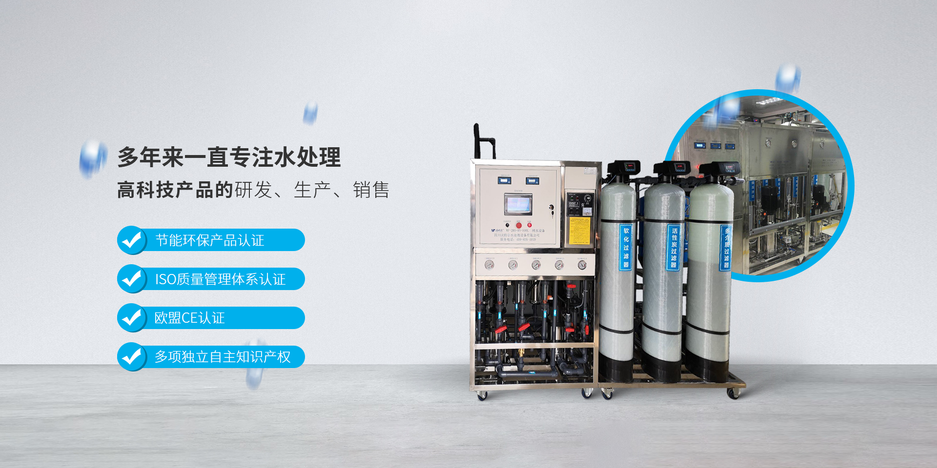 四川沃特爾水處理設(shè)備有限公司位于成都市溫江區(qū)成都海峽兩岸科技產(chǎn)業(yè)開(kāi)發(fā)園雙堰路1919號(hào)20號(hào)樓,公司成立于2005年6月16日,擁有3000多平米的現(xiàn)代化廠房,是一家集純水和超純水設(shè)備的研發(fā)設(shè)計(jì)、生產(chǎn)銷(xiāo)售、安裝服務(wù)、技術(shù)咨詢(xún)?yōu)橐惑w的綜合型企業(yè)。 公司主要生產(chǎn)和經(jīng)營(yíng)實(shí)驗(yàn)室超純水機(jī)系列、工業(yè)水處理設(shè)備等。