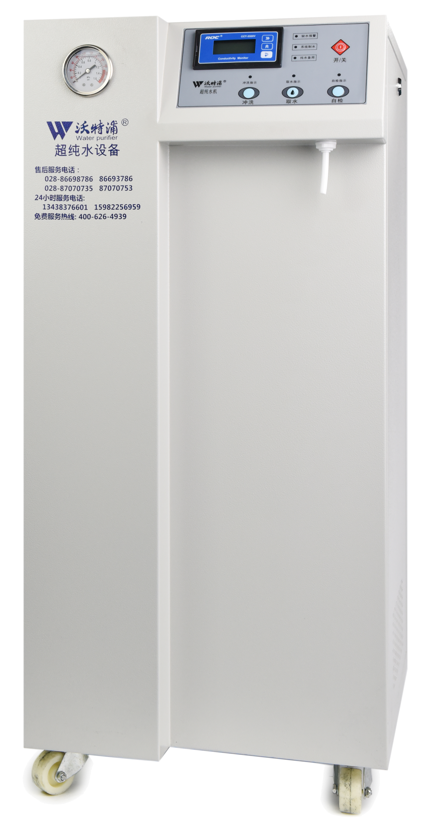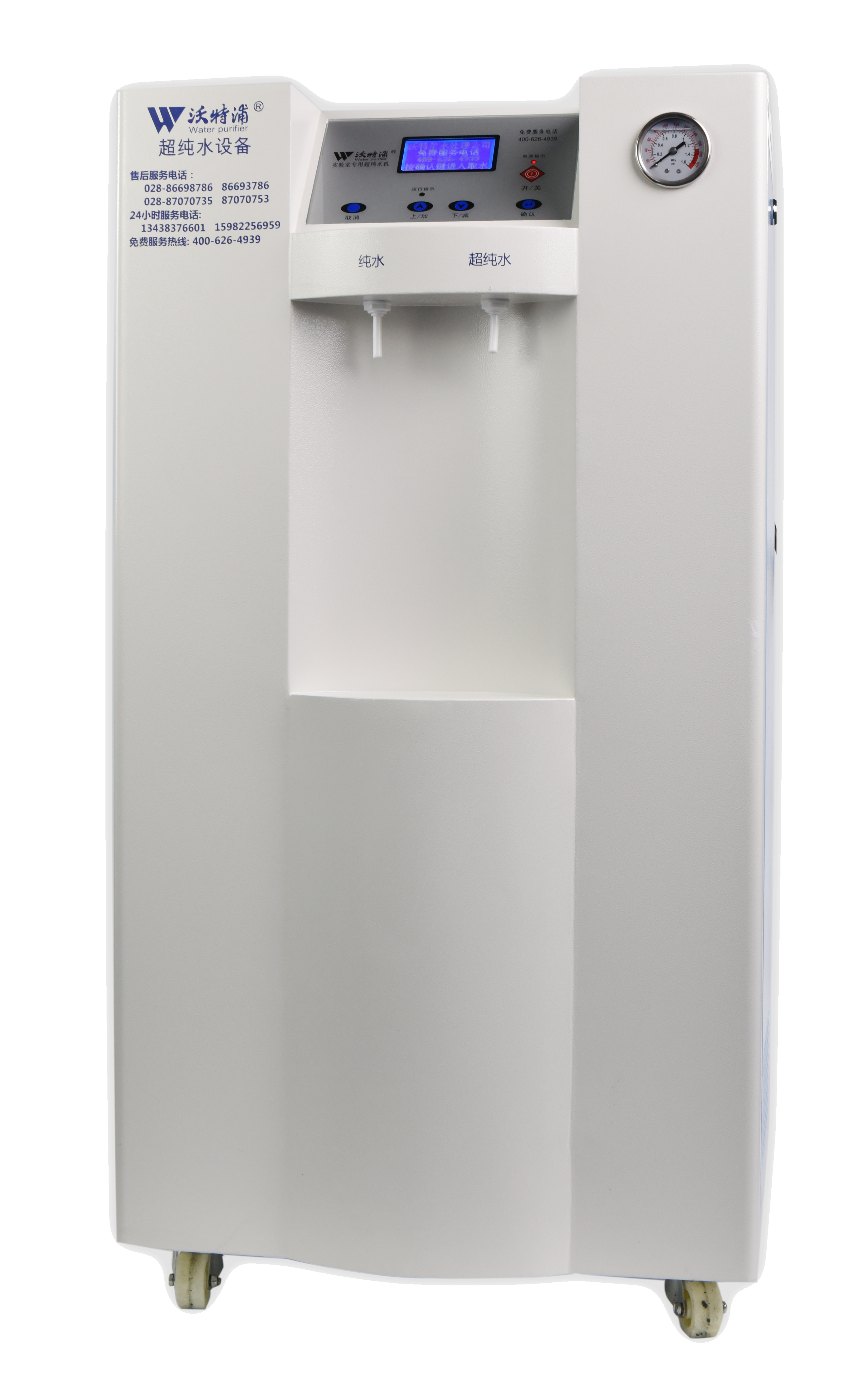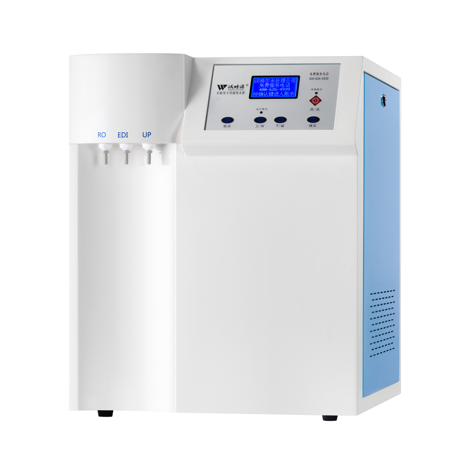 采用雙波長(zhǎng)紫外消解系統(tǒng),除熱源超濾膜組件,采用進(jìn)口離子交換樹(shù)脂過(guò)濾,使超純水能滿(mǎn)足各種實(shí)驗(yàn)要求。