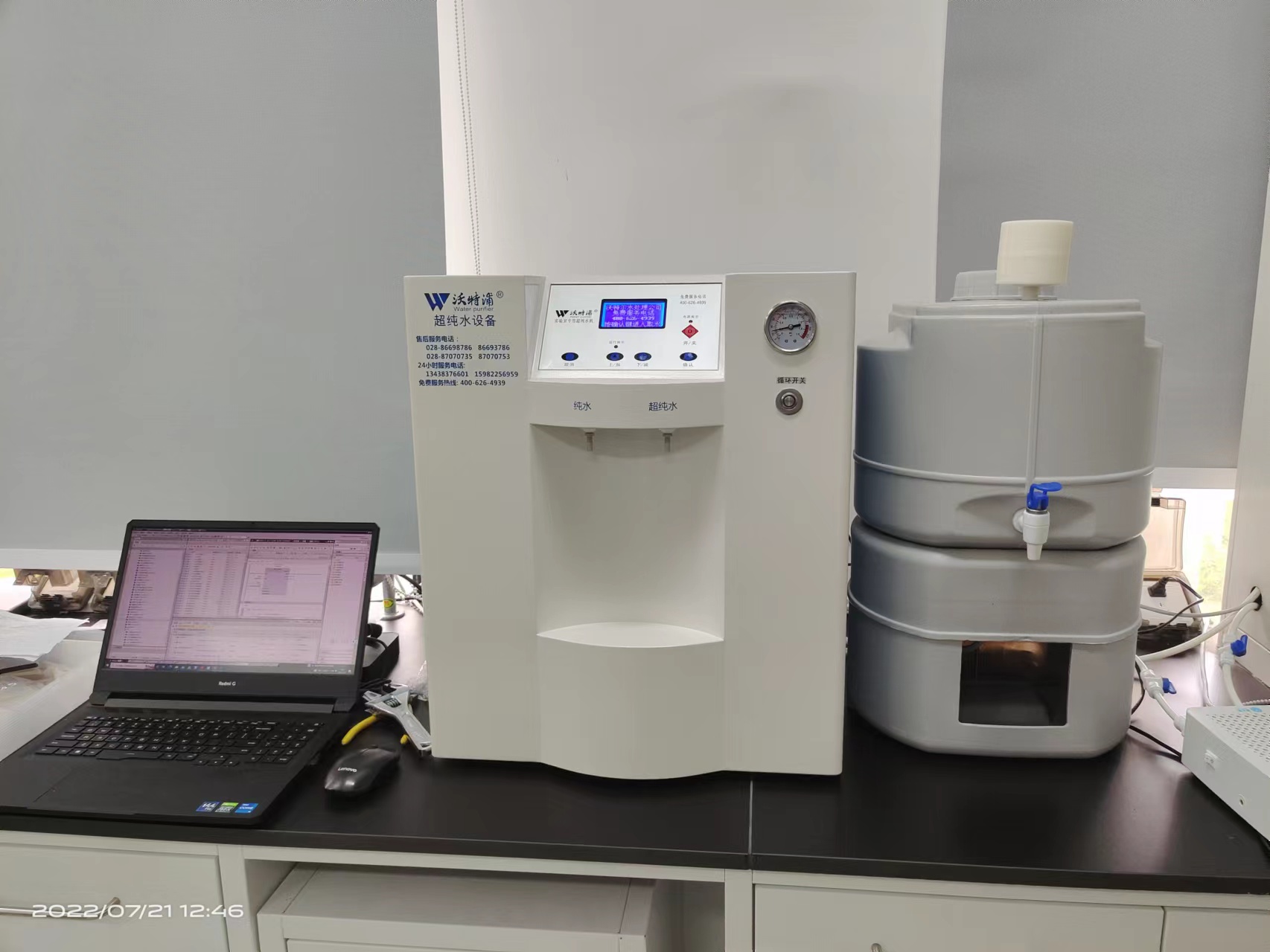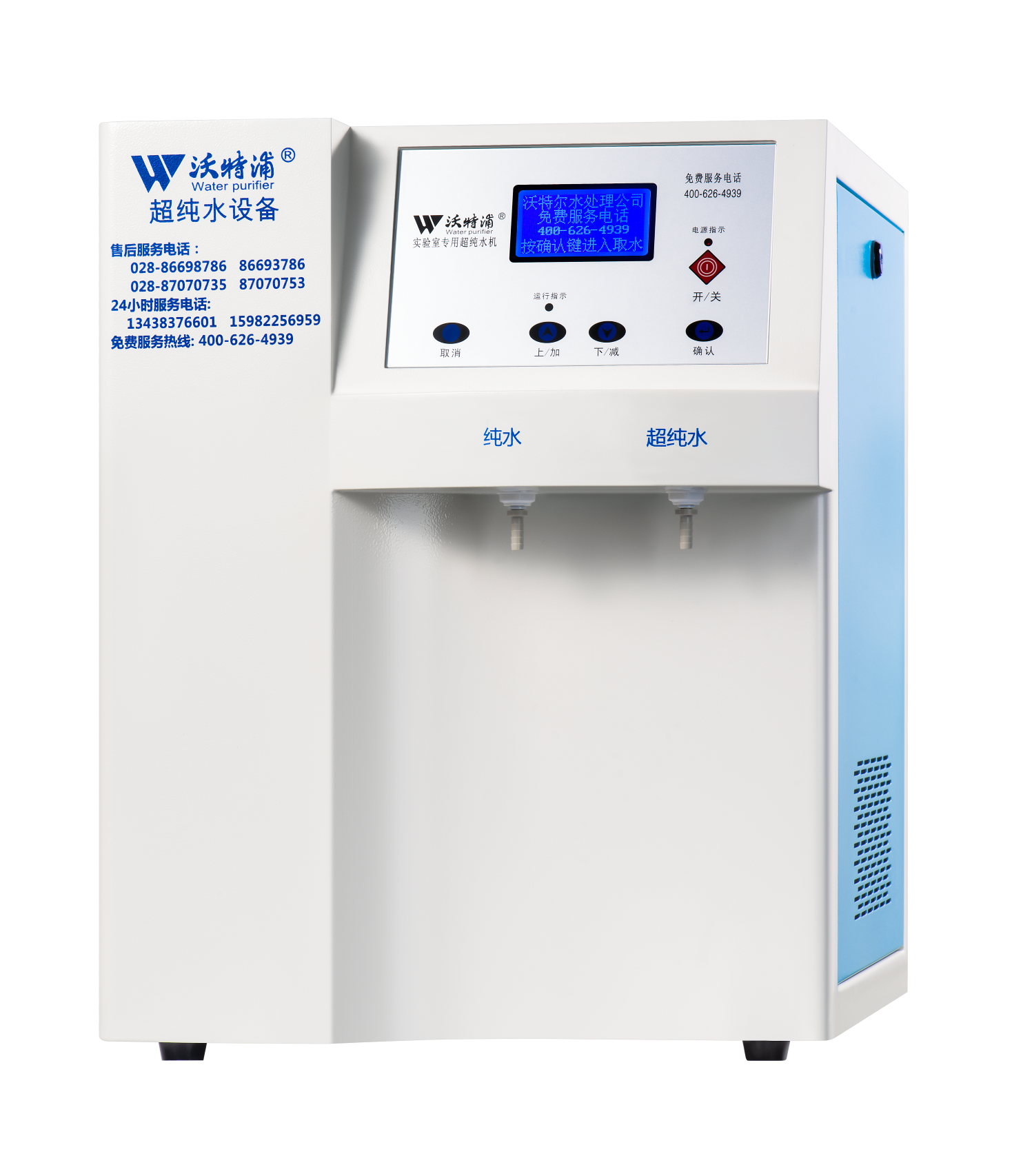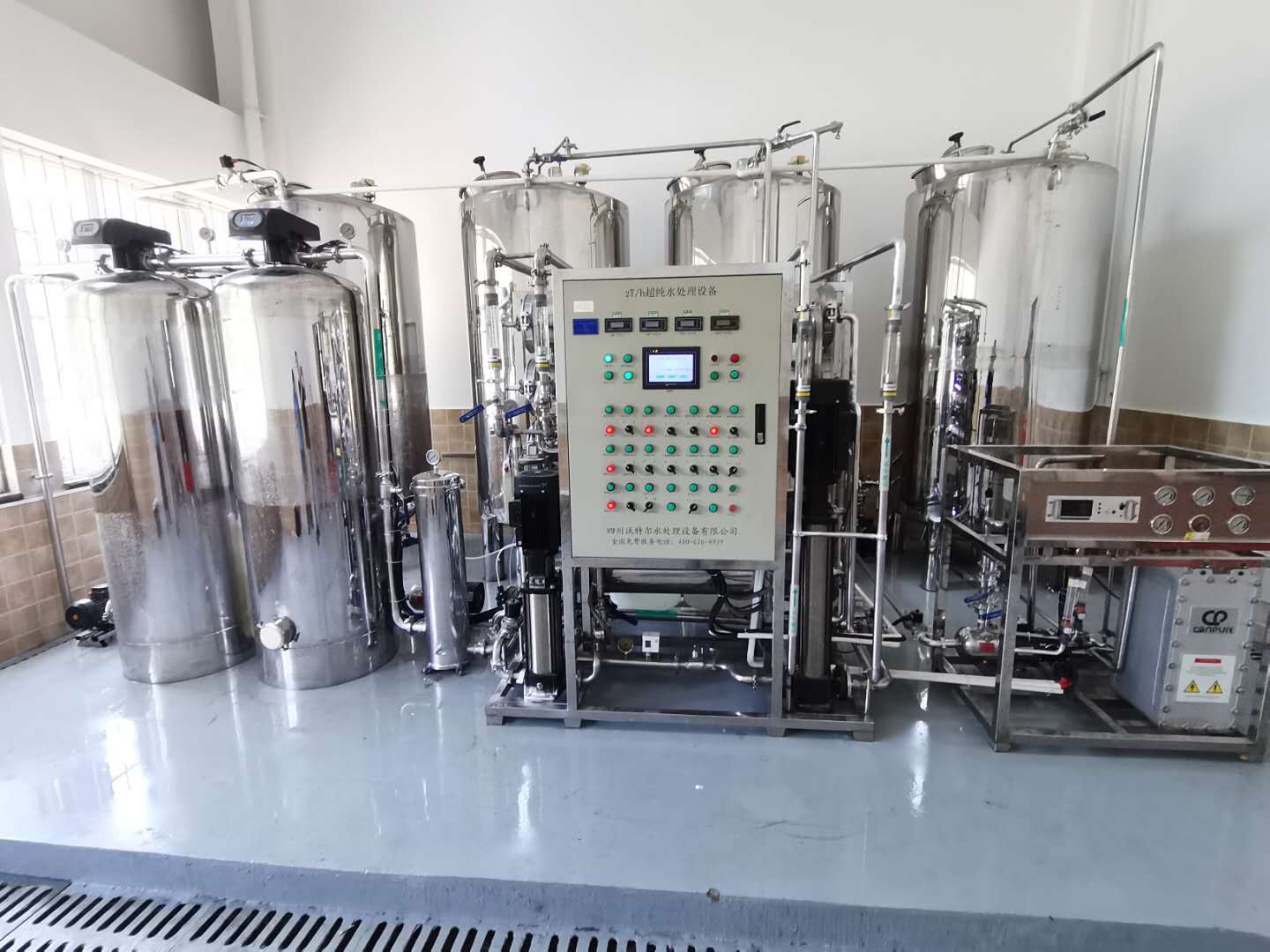 采用雙波長(zhǎng)紫外消解系統(tǒng),除熱源超濾膜組件,采用進(jìn)口離子交換樹(shù)脂過(guò)濾,使超純水能滿(mǎn)足各種實(shí)驗(yàn)要求。
